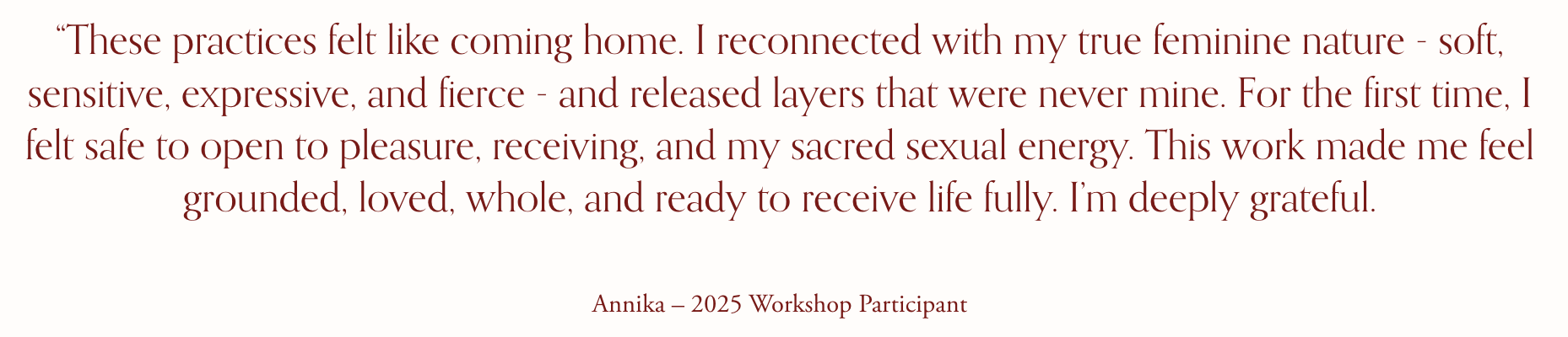 Where we awaken our womb, return to wholeness and inner union, deepen our devotion, and liberate the moment with love.